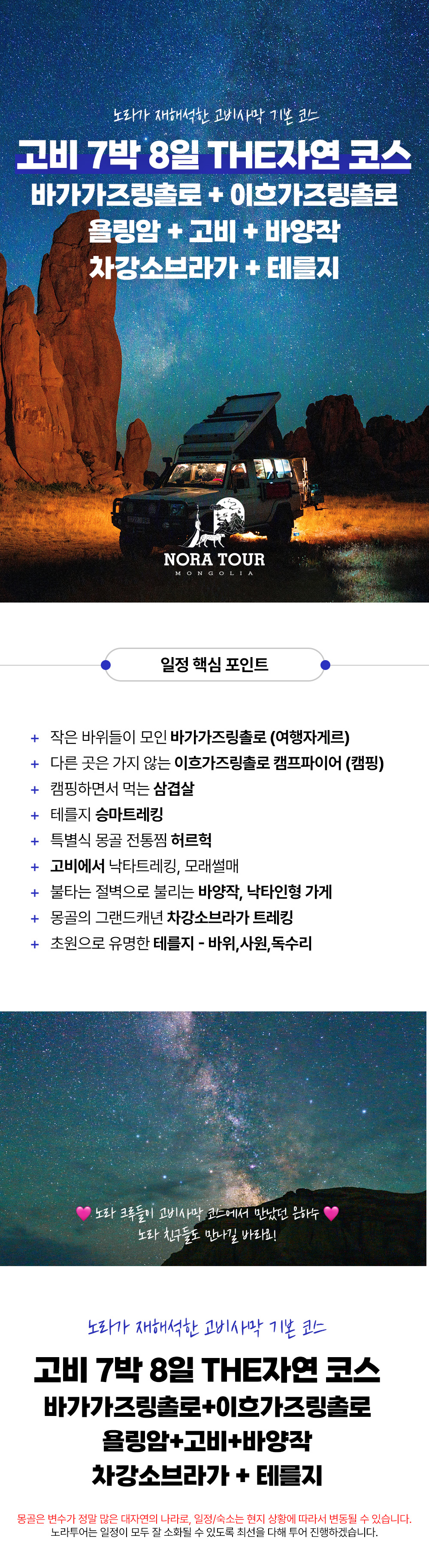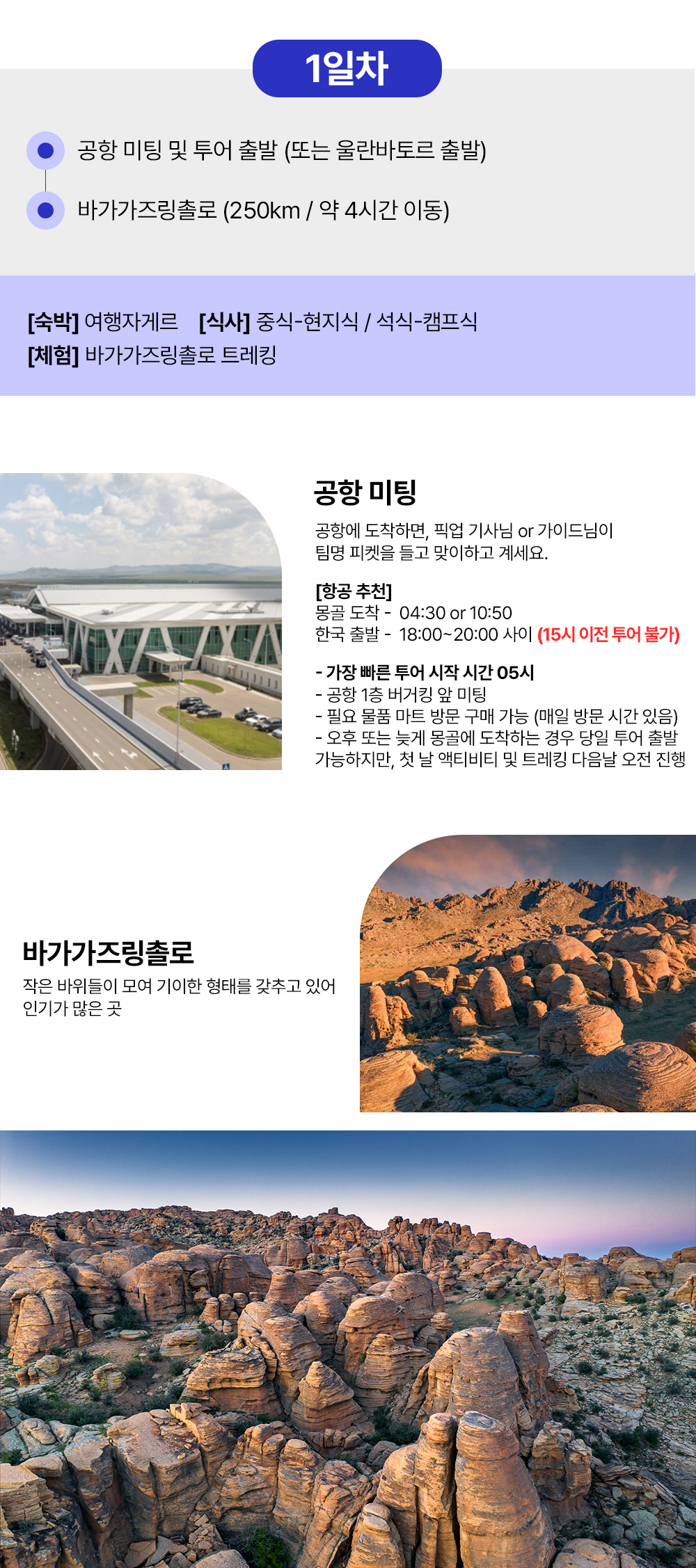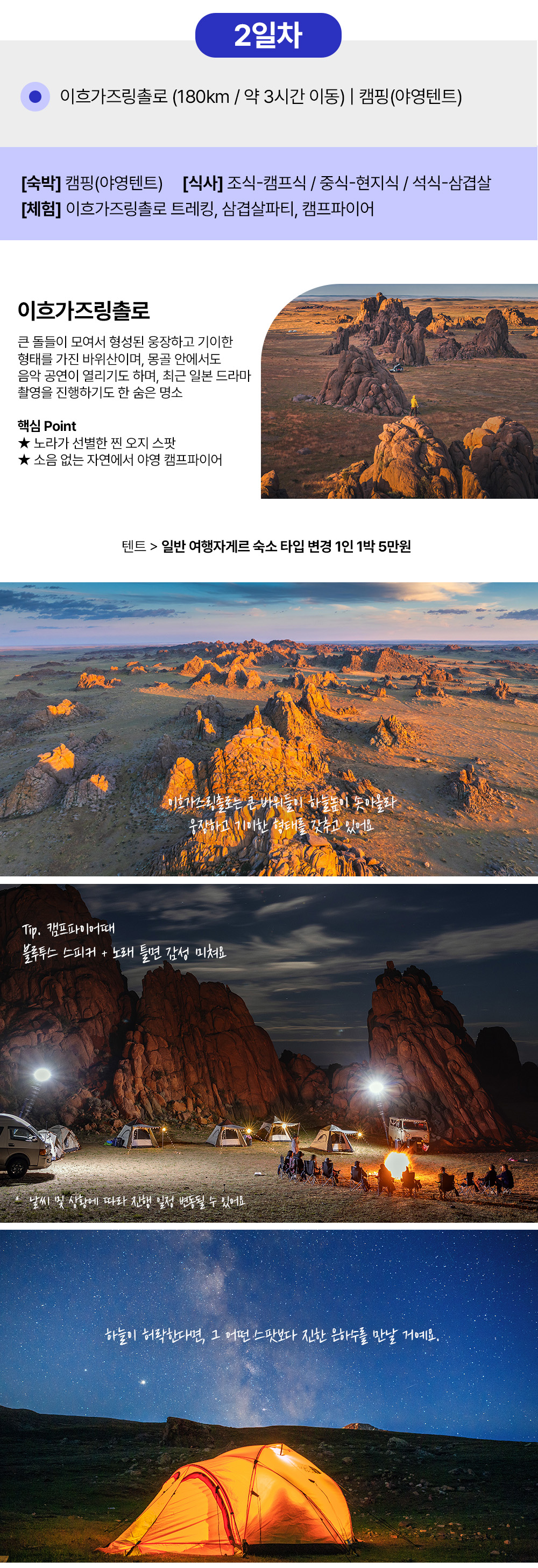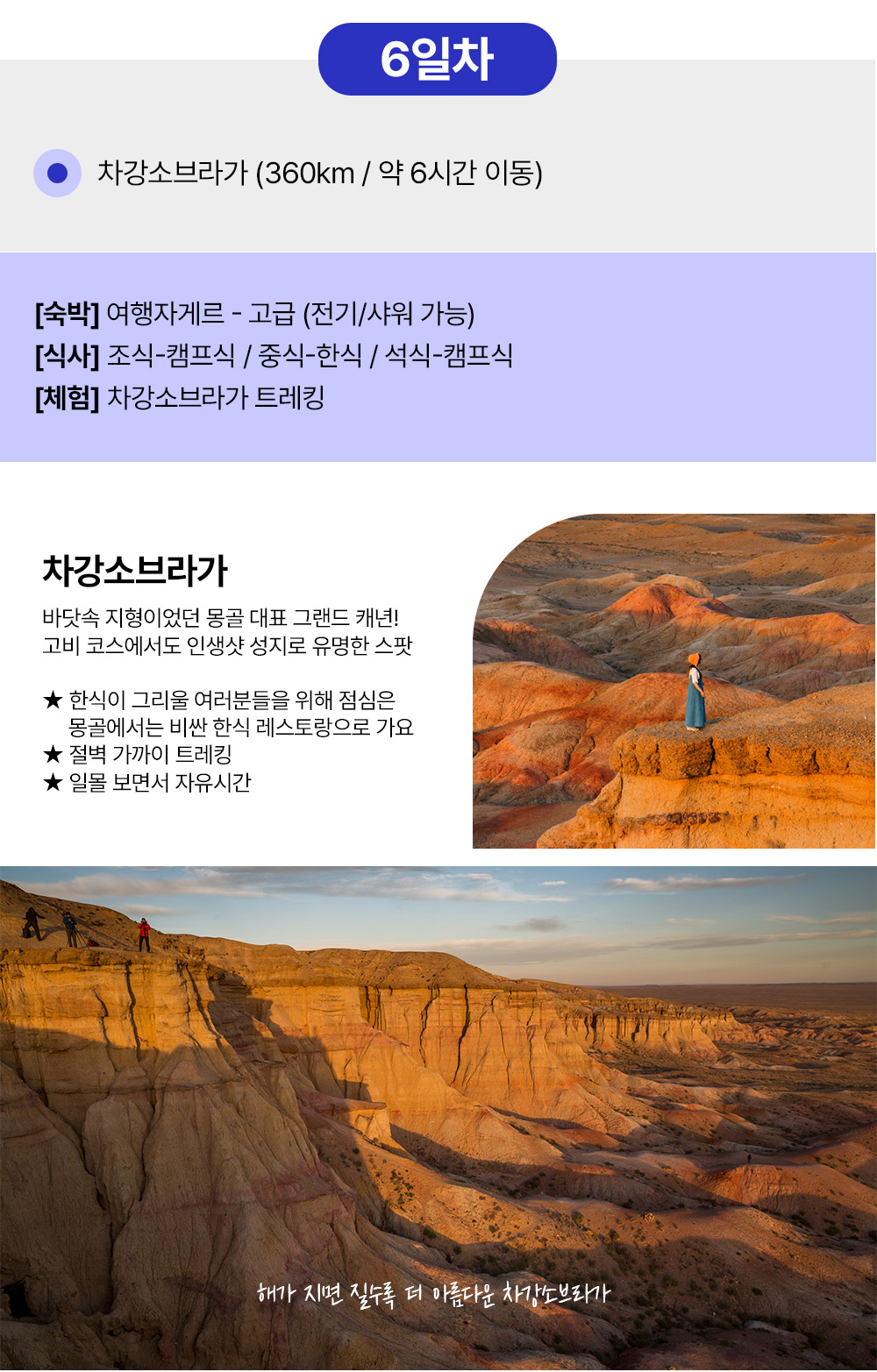 [6day] 몽골의 그랜드캐년 차강소브라가 트레킹 (여행자게르-고급)