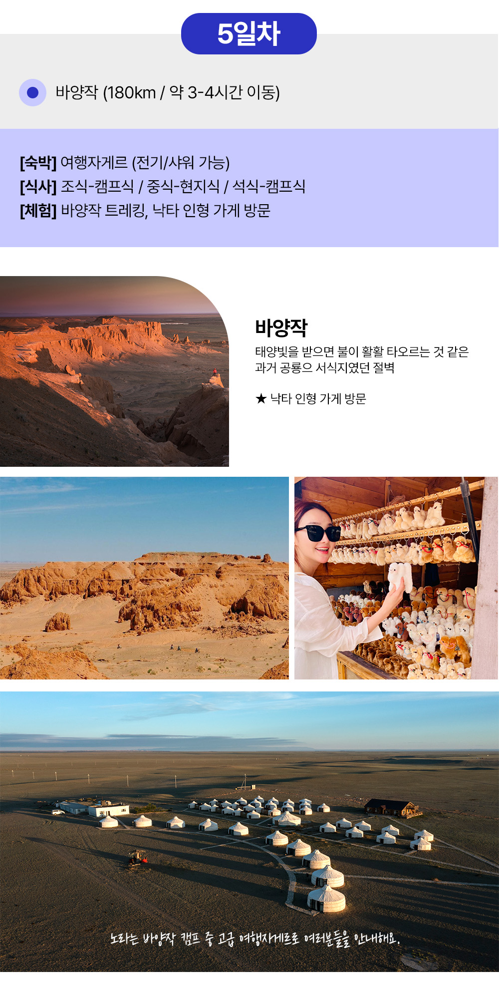 [5day] 석양 아래 불타는 절벽 바양작, 낙타인형 가게, 인생샷 (여행자게르)