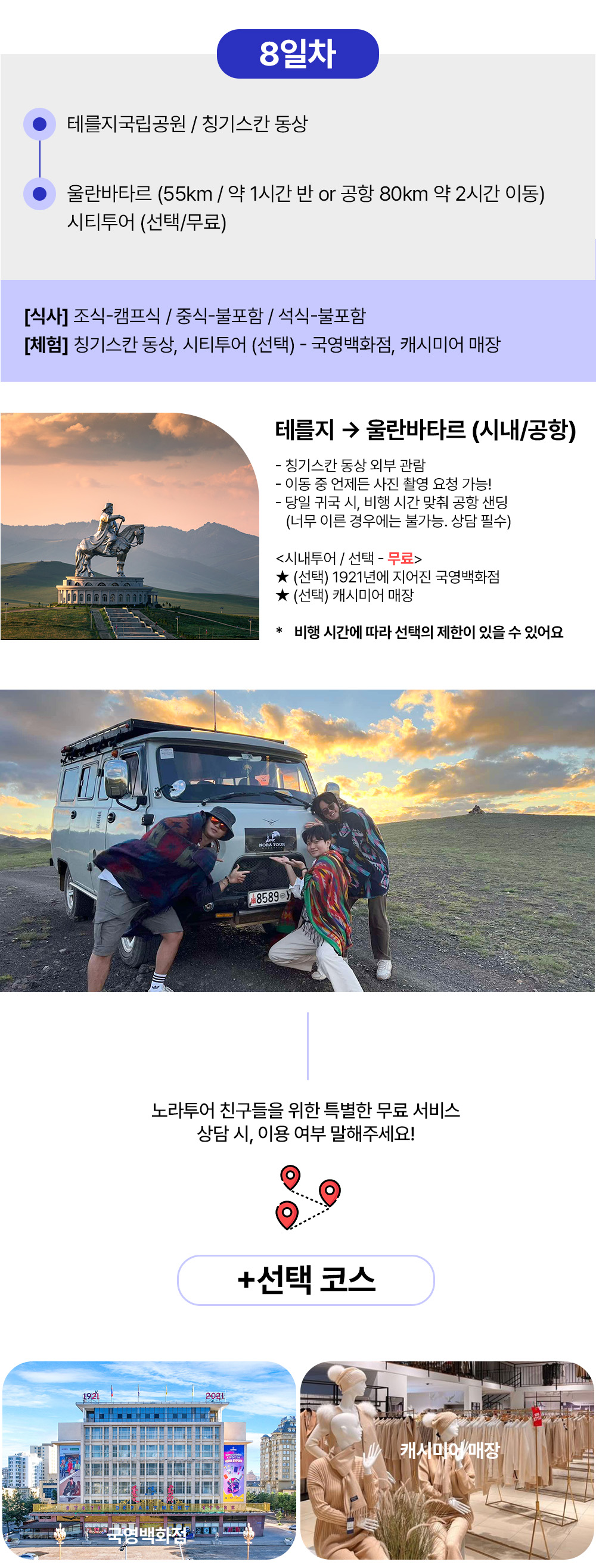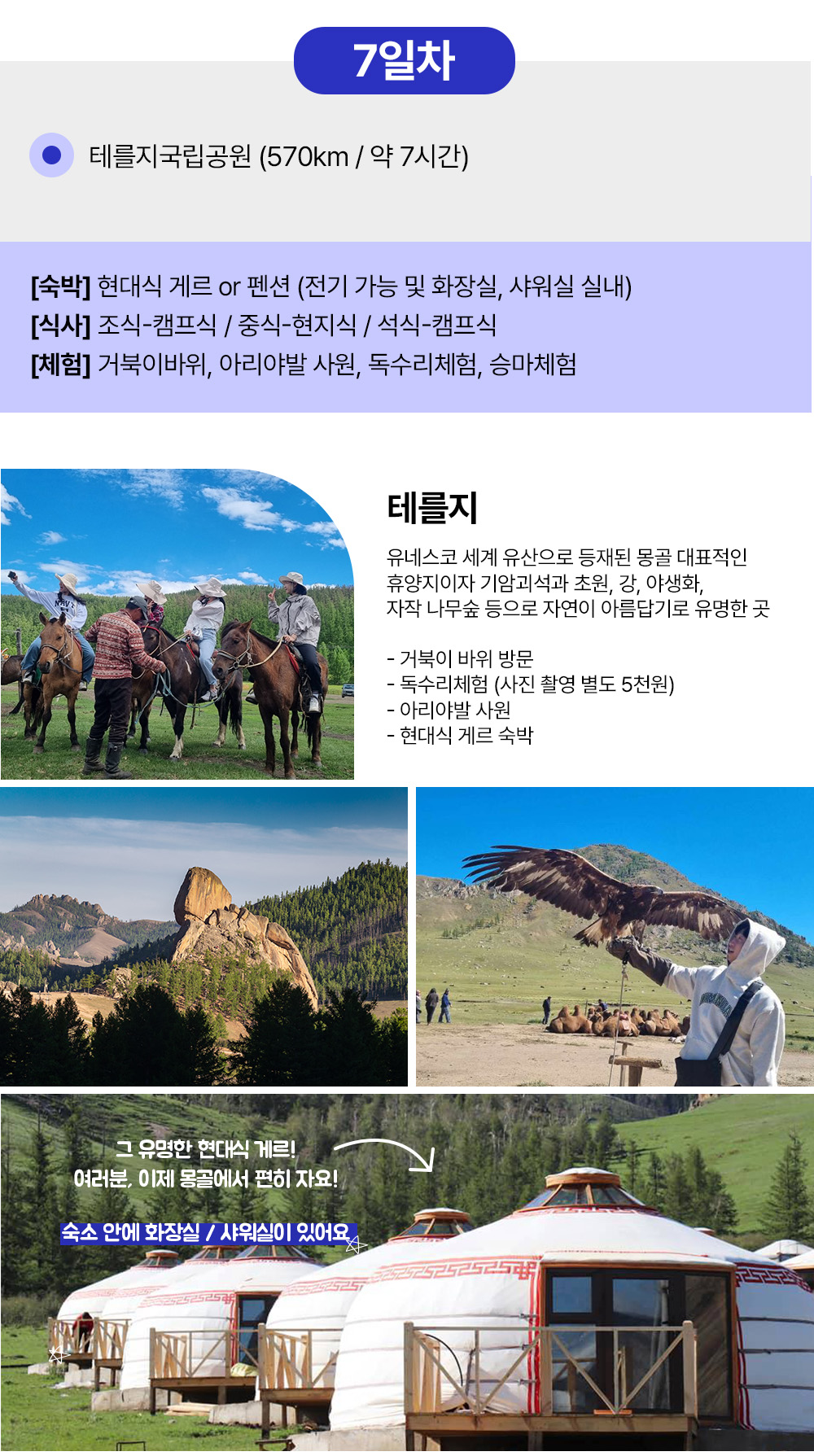 [7day] 유네스코 등재 테를지, 승마트레킹, 거북이 바위, 아랴발 사원, 독수리체험 (현대식게르or펜션)