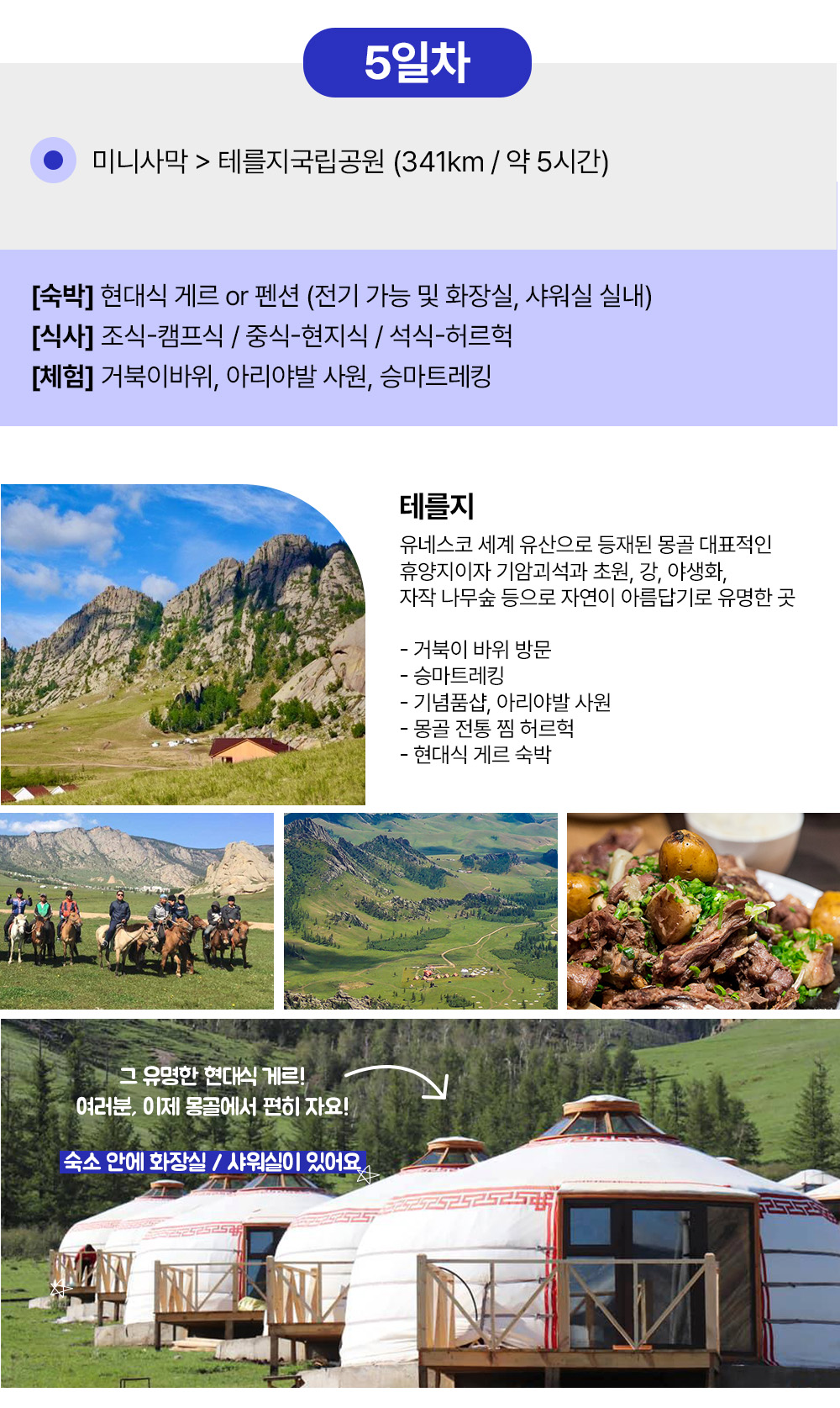 [중부몽골/5박6일/정복 코스] 노마딕쇼 - 어기호수 - 온천 - 카라코롬 - 미니사막 - 테를지