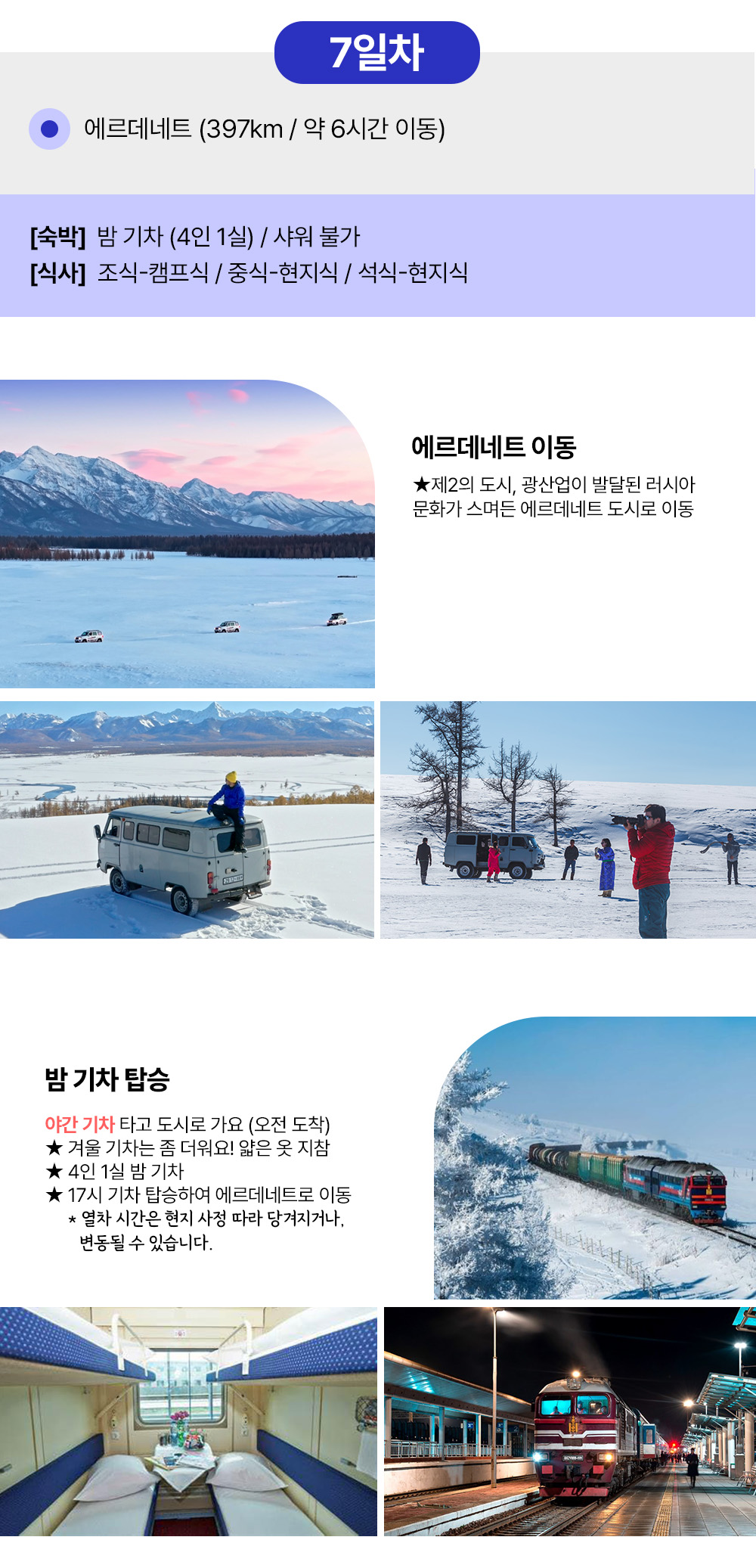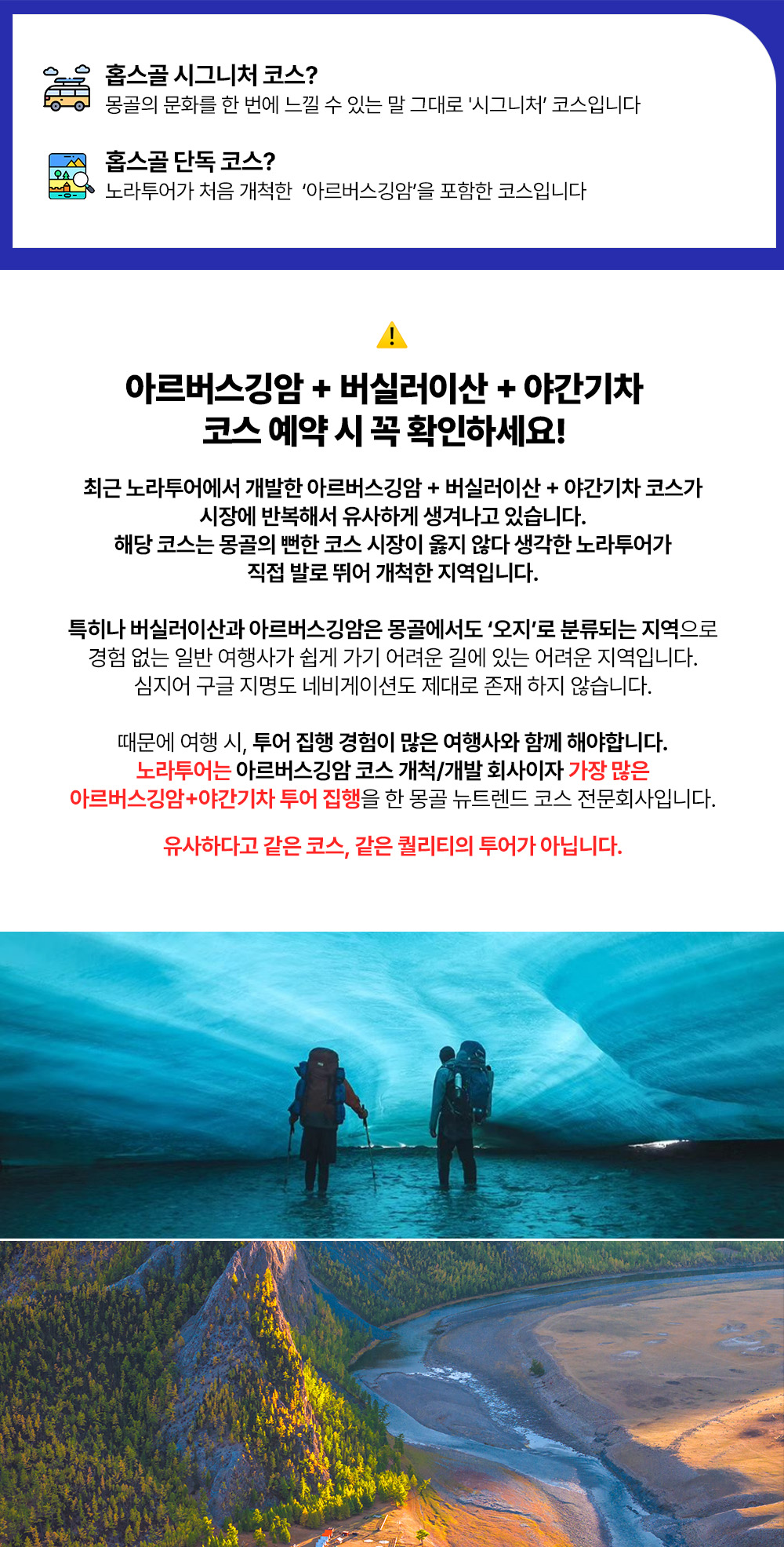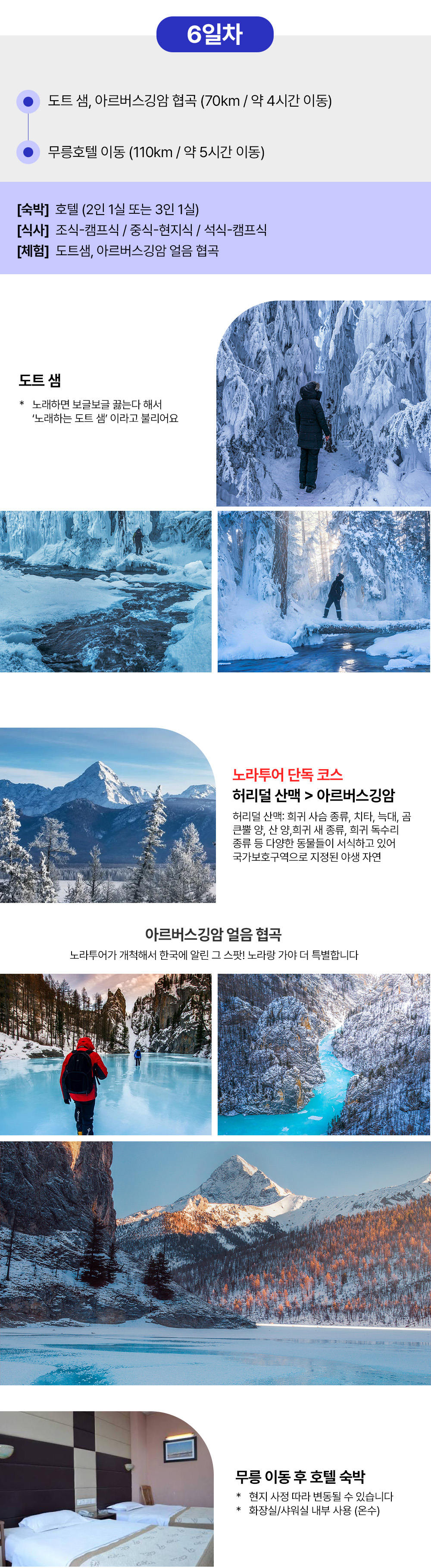 [6day] 도트 샘, 홉스골의 절정 아르버스깅암 얼음협곡 70km 4 시간->무릉 호텔 110km 5 시간(호텔)