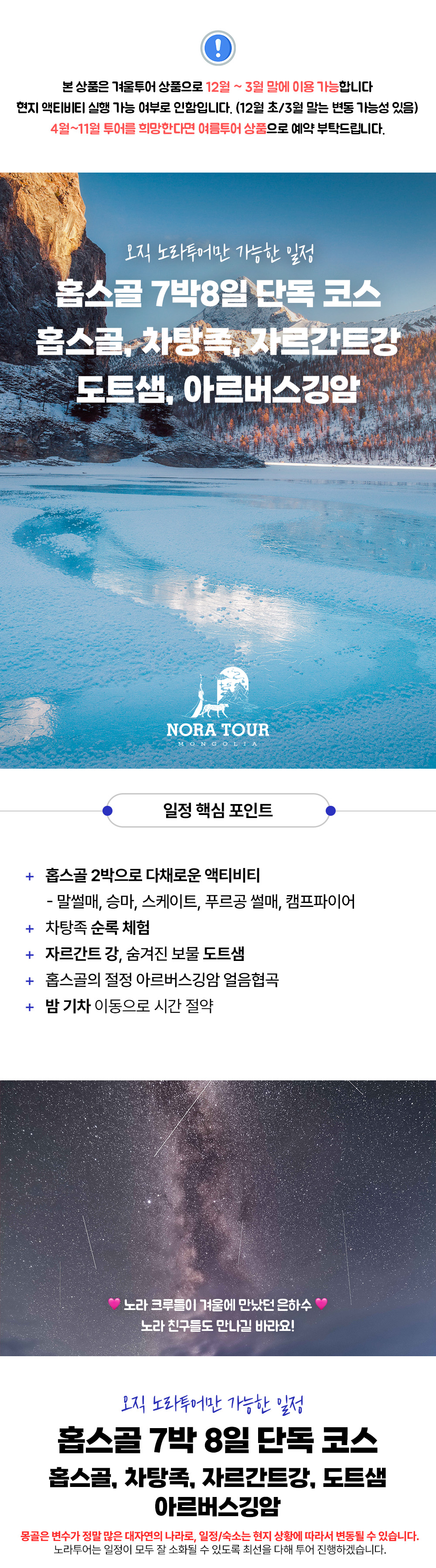 [3day] 홉스골 호수, 소원섬 방문, 스케이트, 푸르공 썰매, 캠프파이어(고급 펜션 or 고급게르)