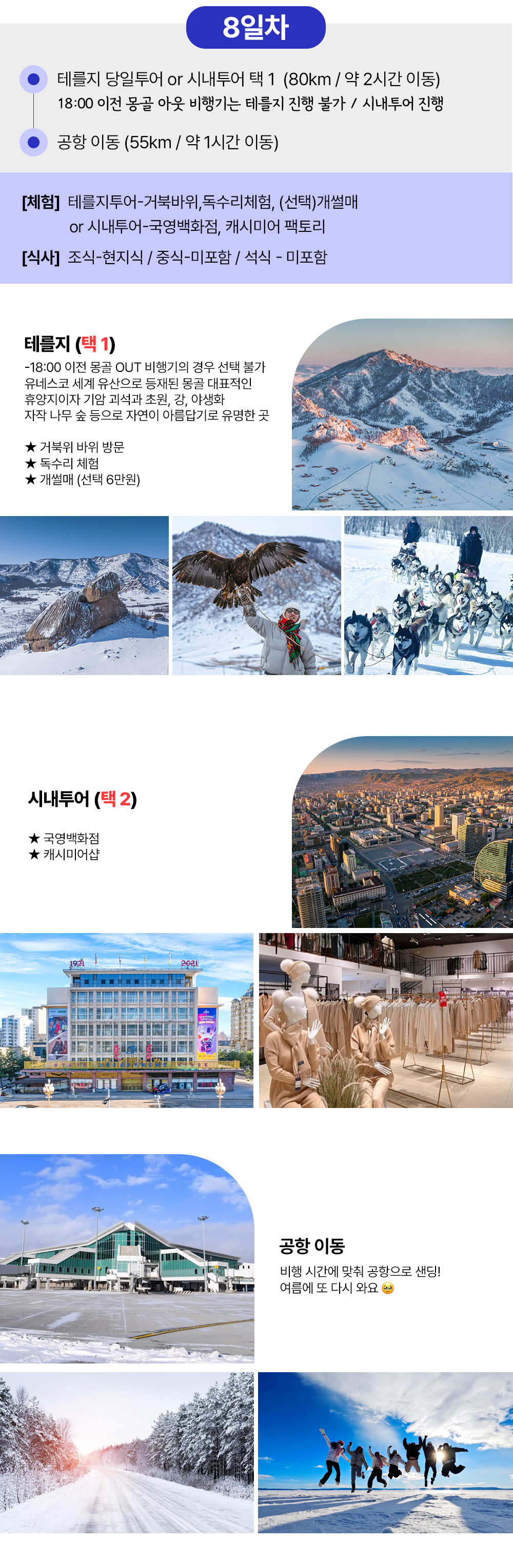 [8day] 테를지 or 시내 투어 후 공항 55km 2 시간